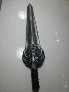 Now this sword is still to big, with a super wide blade and now that i know better it bugs the crap out of me! haha, but either way, i am still so happy with how my very first weapon ever turned out!
