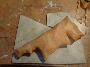 Next i made the fur parts of the costume. This was actually the easiest part of the whole thing. Haha. All i did was cut out triangles of the faux fur fabric and then sew them together!