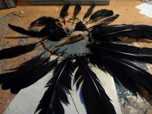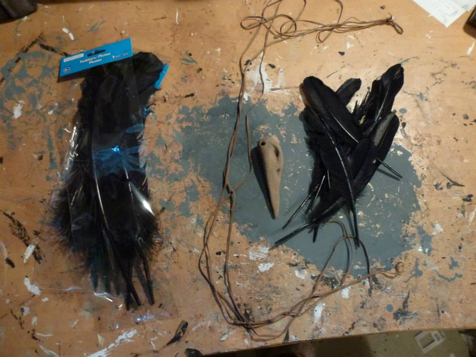All these little details are what made me love this costume so much! Then all i had left was the necklace! Got some feathers, got some leather lacing and then sewed them all together! I molded the birds scull the same way i did all the other little pieces. Worbla and paint!