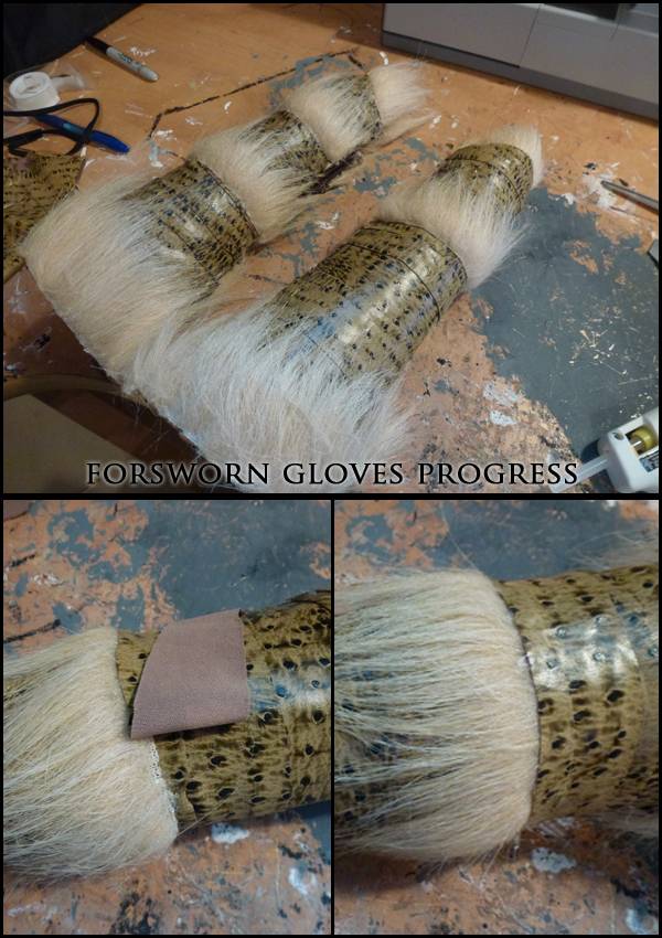 Next was the gloves! This is used a very method to making the boots. Base was craft foam with a zipper, then layers of vinyl and faux fur.