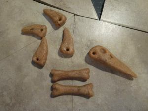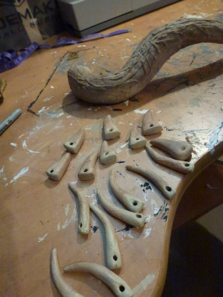 After those were done I made all the little spikes and bone pieces that this costume has! I used my Worbla scraps and molded them by hand. I then poked holes in them white it was still hot, so i could sew the onto the costume.